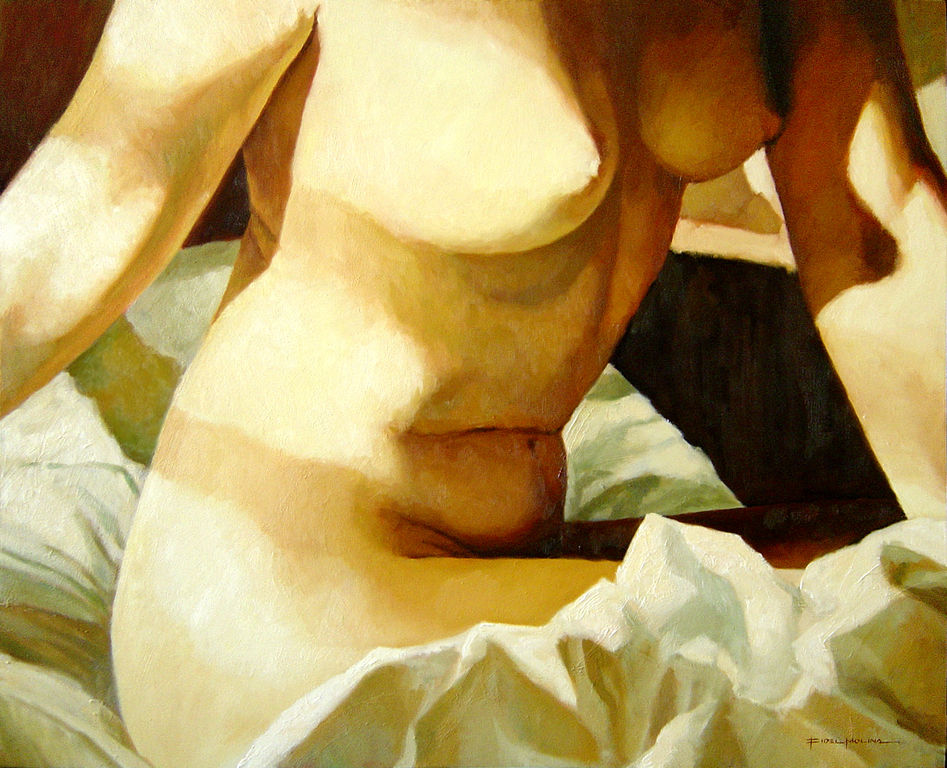 Sol de la mañana Fecha: 27 julio, 2013Autor: Fidel Molina Categoria: Figura y desnudos Etiquetas: óleo, canvas, desnudo, lienzo, mujer, nude, oil, painting, pintura, woman Navegador de artículos ← Torres de Colón Blanca. Años 60 → Óleo sobre lienzo / Oil on canvas. 81 x 100 cm. Comparte esto: Compartir en X (Se abre en una ventana nueva) X Comparte en Facebook (Se abre en una ventana nueva) Facebook Compartir en LinkedIn (Se abre en una ventana nueva) LinkedIn Haz clic en Pinterest (Se abre en una ventana nueva) Pinterest Compartir en Tumblr (Se abre en una ventana nueva) Tumblr Me gusta Cargando...
