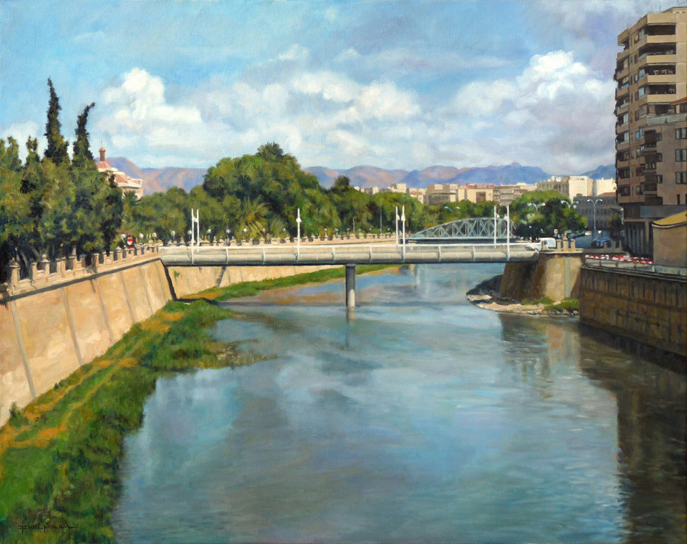 El río Segura por Murcia Fecha: 27 agosto, 2013Autor: Fidel Molina Categoria: Ciudad, Paisajes Etiquetas: óleo, canvas, city, ciudad, españa, landscape, lienzo, murcia, oil, painting, paisaje, pintura, spain, urban, urbano Navegador de artículos ← Capítulo seis Acariciada por la brisa → Óleo sobre lienzo / Oil on canvas. 73 x 92 cm. 37.992331 -1.130458 Comparte esto: Compartir en X (Se abre en una ventana nueva) X Comparte en Facebook (Se abre en una ventana nueva) Facebook Compartir en LinkedIn (Se abre en una ventana nueva) LinkedIn Haz clic en Pinterest (Se abre en una ventana nueva) Pinterest Compartir en Tumblr (Se abre en una ventana nueva) Tumblr Me gusta Cargando...