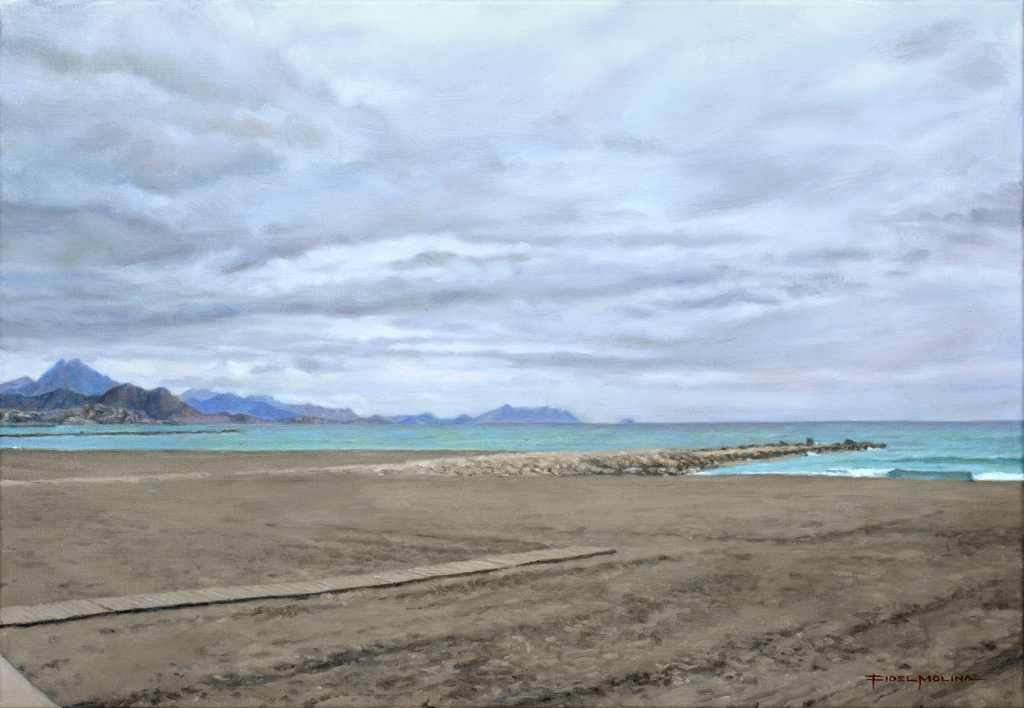 Día gris en la playa de El Campello Fecha: 26 octubre, 2013Autor: Fidel Molina Categoria: Marinas Etiquetas: alicante, óleo, beach, canvas, españa, lienzo, mar, marina, marine, oil, painting, pintura, playa, sea, spain Navegador de artículos ← Embestida codiciosa Café y cigarrillo → Óleo sobre lienzo / Oil on canvas. 38 x 55 cm. 38.428980 -0.397816 Comparte esto: Compartir en X (Se abre en una ventana nueva) X Comparte en Facebook (Se abre en una ventana nueva) Facebook Compartir en LinkedIn (Se abre en una ventana nueva) LinkedIn Haz clic en Pinterest (Se abre en una ventana nueva) Pinterest Compartir en Tumblr (Se abre en una ventana nueva) Tumblr Me gusta Cargando...