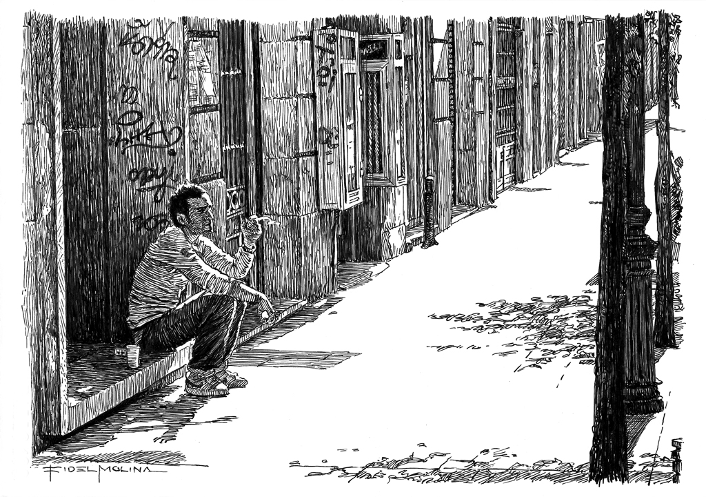 Café y cigarrillo Fecha: 1 noviembre, 2013Autor: Fidel Molina Categoria: Ciudad Etiquetas: city, ciudad, dibujo, drawing, españa, hombre, ink, madrid, man, spain, tinta, urban, urbano Navegador de artículos ← Día gris en la playa de El Campello Luz de agosto en Murcia → Tinta china sobre papel Caballo / Ink on Caballo paper. 21 x 29,7 cm. Comparte esto: Haz clic para compartir en X (Se abre en una ventana nueva) X Haz clic para compartir en Facebook (Se abre en una ventana nueva) Facebook Haz clic para compartir en LinkedIn (Se abre en una ventana nueva) LinkedIn Haz clic para compartir en Pinterest (Se abre en una ventana nueva) Pinterest Haz clic para compartir en Tumblr (Se abre en una ventana nueva) Tumblr Me gusta Cargando...