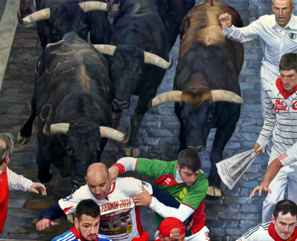 Encierro de San Fermín Fecha: 13 julio, 2015Autor: Fidel Molina Categoria: Obra disponible, Toros Etiquetas: óleo, bull, canvas, españa, lienzo, oil, painting, pintura, spain, toro Navegador de artículos ← Con los pies bañados por el mar Hondura de Conchi Ríos → Óleo sobre lienzo / Oil on canvas. 81 x 100 cm. Gastos de envío GRATIS a España y Portugal. 42.812526 -1.645775 Pamplona, Navarra, España Comparte esto: Haz clic para compartir en X (Se abre en una ventana nueva) X Haz clic para compartir en Facebook (Se abre en una ventana nueva) Facebook Haz clic para compartir en LinkedIn (Se abre en una ventana nueva) LinkedIn Haz clic para compartir en Pinterest (Se abre en una ventana nueva) Pinterest Haz clic para compartir en Tumblr (Se abre en una ventana nueva) Tumblr Me gusta Cargando...
