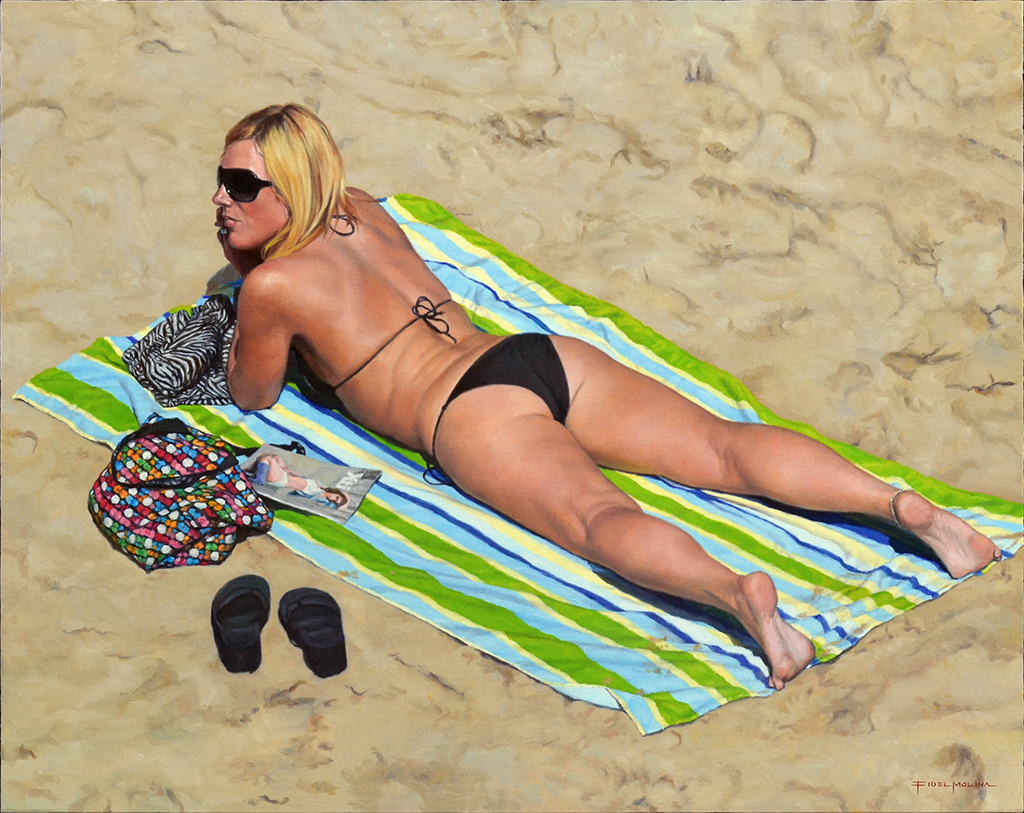 Al sol sobre toalla de rayas Fecha: 17 octubre, 2015Autor: Fidel Molina Categoria: Figura y desnudos, Obra disponible Etiquetas: óleo, beach, bikini, canvas, desnudo, lienzo, mujer, nude, oil, painting, pintura, playa, woman Navegador de artículos ← Manhattan desde Staten Island Passeig de Sant Joan → Óleo sobre lienzo / Oil on canvas. 73 x 92 cm. Gastos de envío GRATIS a España y Portugal. Comparte esto: Compartir en X (Se abre en una ventana nueva) X Comparte en Facebook (Se abre en una ventana nueva) Facebook Compartir en LinkedIn (Se abre en una ventana nueva) LinkedIn Haz clic en Pinterest (Se abre en una ventana nueva) Pinterest Compartir en Tumblr (Se abre en una ventana nueva) Tumblr Me gusta Cargando...