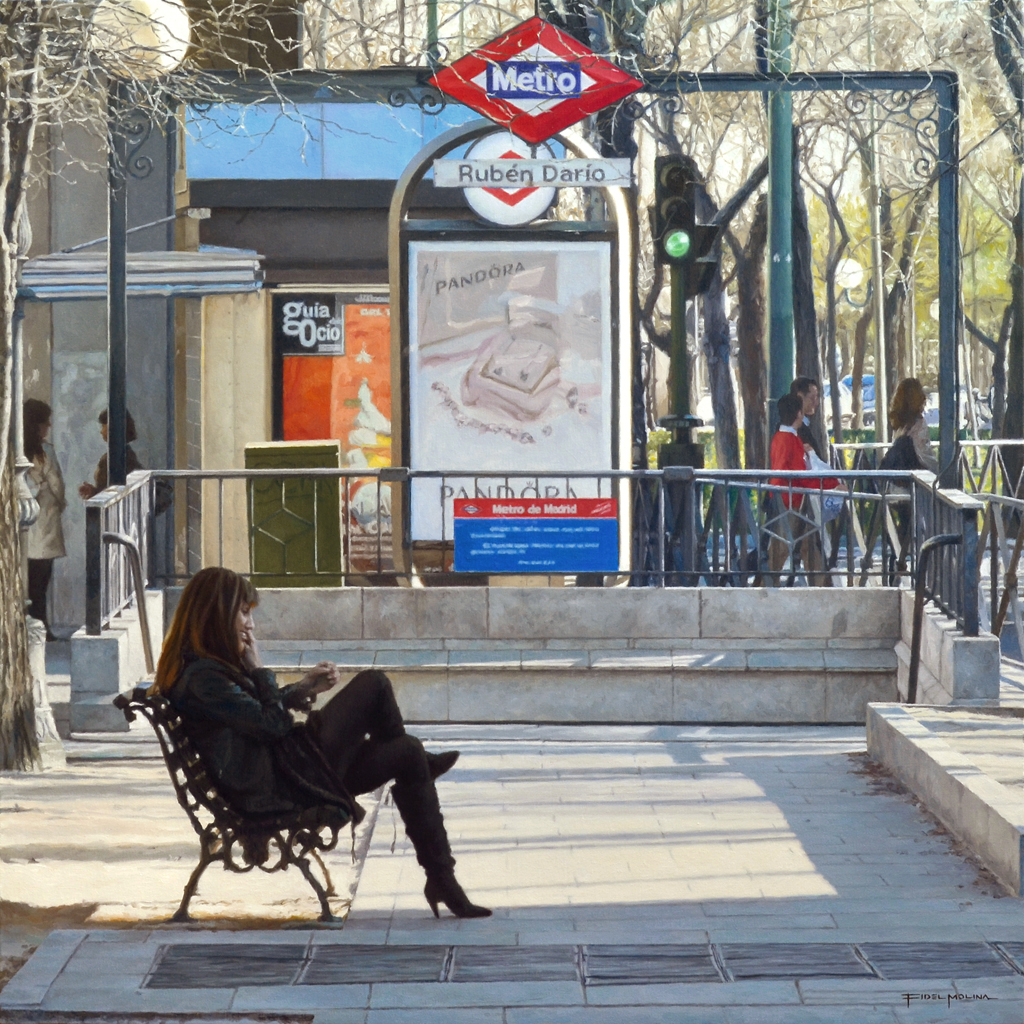 Sentada frente a la entrada del metro Fecha: 11 diciembre, 2015Autor: Fidel Molina Categoria: Ciudad Etiquetas: óleo, canvas, city, ciudad, españa, lienzo, madrid, mujer, oil, painting, pintura, spain, urban, urbano, woman Navegador de artículos ← Luz matinal en el Pâquier, Annecy Por el Boulevard des Capucines → Óleo sobre lienzo / Oil on canvas. 70 x 70 cm. 40.454241 -3.689163 Paseo de la Castellana, Madrid, Madrid, España Comparte esto: Compartir en X (Se abre en una ventana nueva) X Comparte en Facebook (Se abre en una ventana nueva) Facebook Compartir en LinkedIn (Se abre en una ventana nueva) LinkedIn Haz clic en Pinterest (Se abre en una ventana nueva) Pinterest Compartir en Tumblr (Se abre en una ventana nueva) Tumblr Me gusta Cargando...