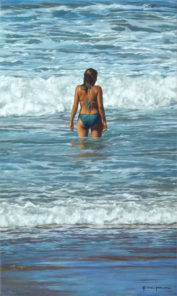 Entre olas Fecha: 22 agosto, 2019Autor: Fidel Molina Categoria: Figura y desnudos Etiquetas: óleo, beach, canvas, desnudo, españa, lienzo, mar, marina, marine, mujer, nude, oil, painting, pintura, playa, sea, spain, woman Navegador de artículos ← Tacones altos II Calle 43 → Óleo sobre lienzo / Oil on canvas. 55 x 33 cm. 43.466347 -5.064586 Playa de Ribadesella O Santa Marina, España Comparte esto: Compartir en X (Se abre en una ventana nueva) X Comparte en Facebook (Se abre en una ventana nueva) Facebook Compartir en LinkedIn (Se abre en una ventana nueva) LinkedIn Haz clic en Pinterest (Se abre en una ventana nueva) Pinterest Compartir en Tumblr (Se abre en una ventana nueva) Tumblr Me gusta Cargando...